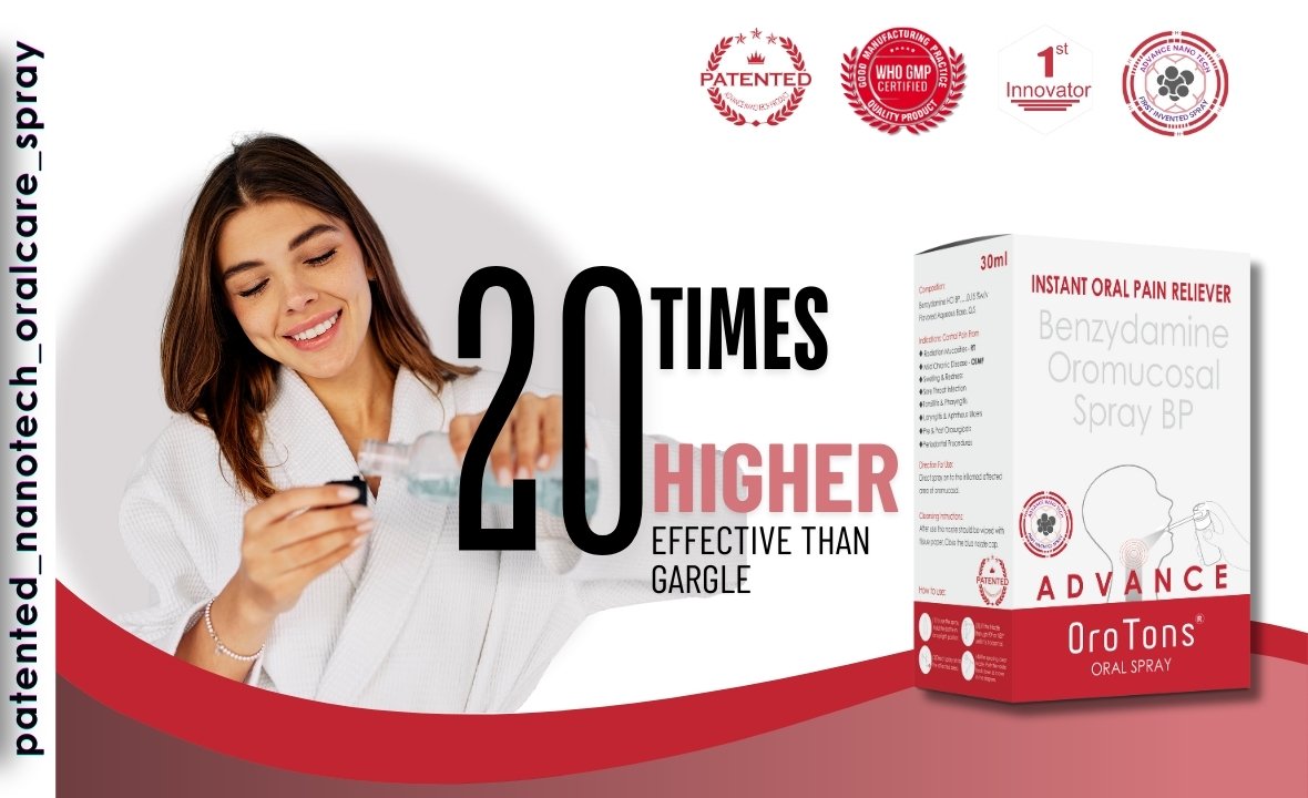 OroTons Advance Spray offers trusted relief for oral discomfort, backed by rigorous scientific testing and healthcare professional recommendations. Targeting a range of oral issues with Benzydamine’s efficacy.