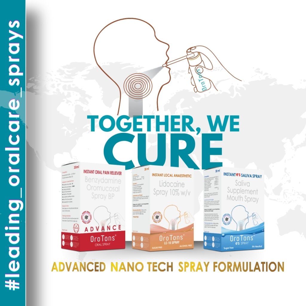 Central to our ethos is the delivery of cutting-edge non-aerosol, alcohol-free, and sugar-free spray technologies. We specialise in formulating sprays tailored for oral cancer, dental, ENT, and paediatric applications. From conceptualization in our state-of-the-art R&D lab to manufacturing scale-up, we prioritise meeting the diverse needs of patients with safe and effective pharma solution.